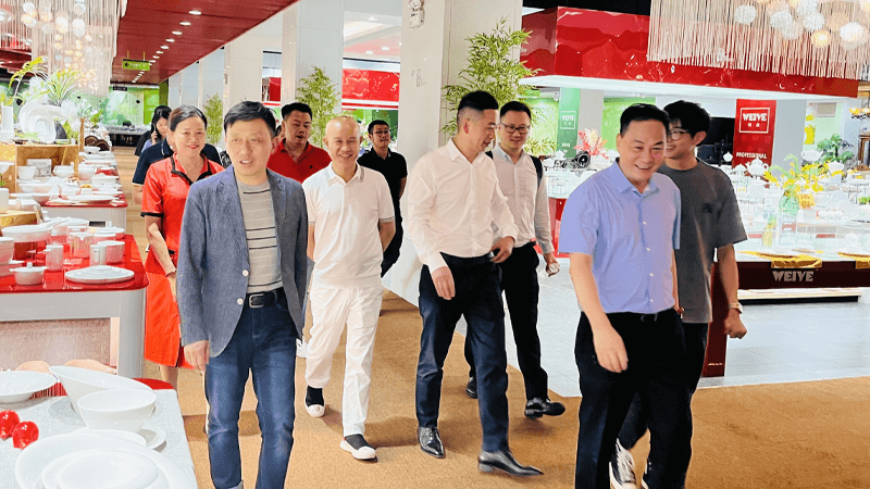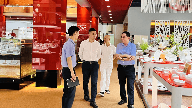 雄正酒業(yè)集團(tuán)創(chuàng)始人張?jiān)俦蛳壬巴鶄I(yè)陶瓷集團(tuán)進(jìn)行業(yè)務(wù)溝通與品牌交流。